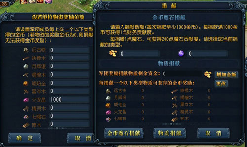 采集并捐献这些资源的团员可以根据军团长的设置得到相应的金币奖励。