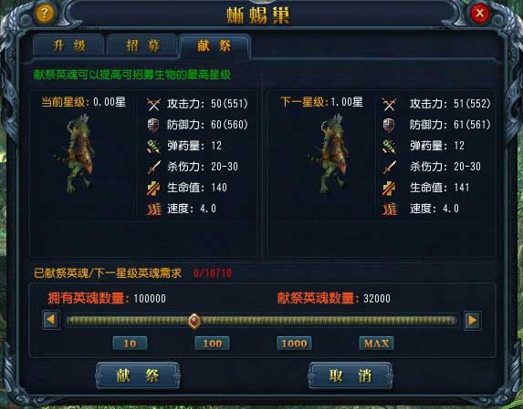 2、兵种死亡后你可以得到英魂,使用英魂在城堡中献祭可以永久增加该城堡该类兵种以后可以招募星级上限。